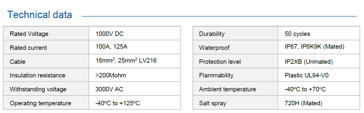 2 PIN RIGHT ANGLE PLUG, RATED CURRENT 125A MAX, CODING A/B/C, WITH/WITHOUT HVIL, 16 TO 25 MM2 SHIELDED WIRE.