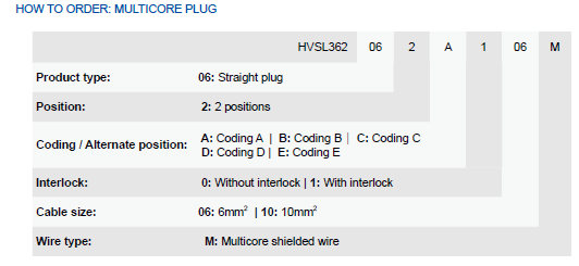 RIGHT ANGLE PLUG, 2 +2 PIN, 40A, ALTERNATE POSITION A/B/C/D/E, WITH INTERLOCK, 6 MM2 SHIELDED WIRE