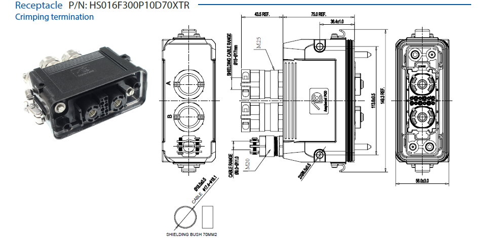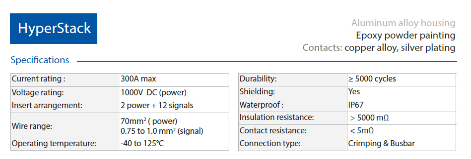 2 POWER+12 SIGNALS, 1000V DC, 300A MAX, HYPERSTACK 压接式插座